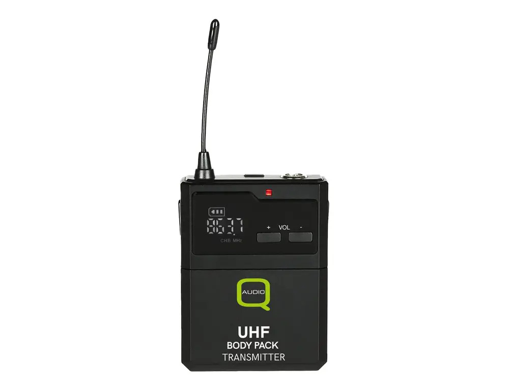 The QWM 1900 V2 HH + BP System is a dual UHF wireless system supplied with one handheld transmitter, one bodypack transmitter and a compact plug-in receiver. It operates on licence-free Channel 70 at 863.1 to 864.9 MHz and includes auto scan for quick setup.